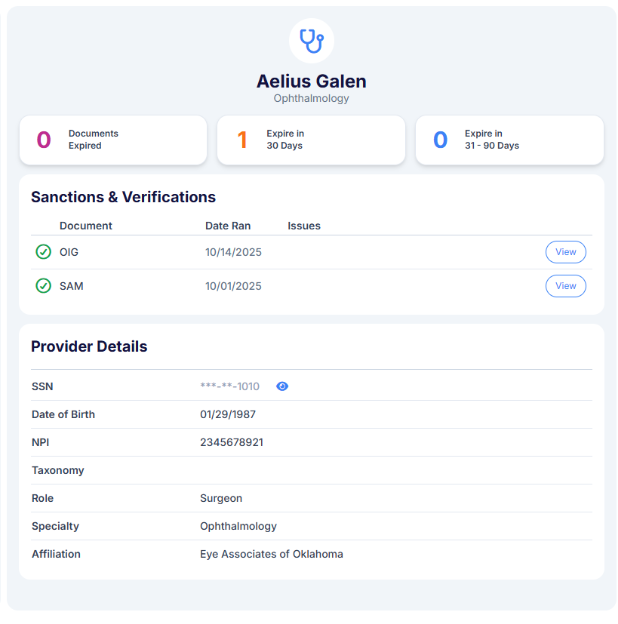 - In the provider’s or staff member’s file, click the Actions button at the top right.